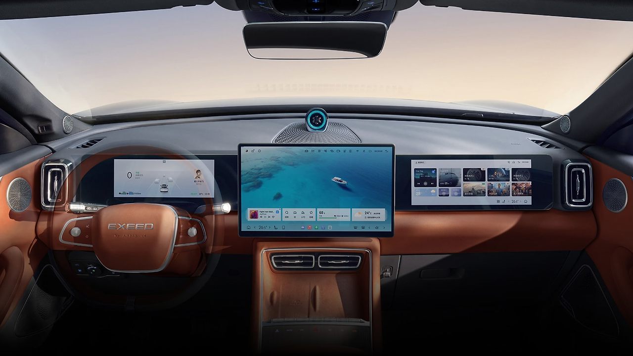 엑시드 ET5의 실내는 프리미엄 전기차에 걸맞은 첨단 기술과 편의 사양으로 가득합니다. 대시보드 중앙에는 15.6인치 대형 터치스크린이 탑재되어 인포테인먼트 시스템의 중심 역할을 담당합니다. 운전석 전방에는 10.25인치 디지털 계기판이 배치되어 주행 정보를 직관적으로 전달합니다.