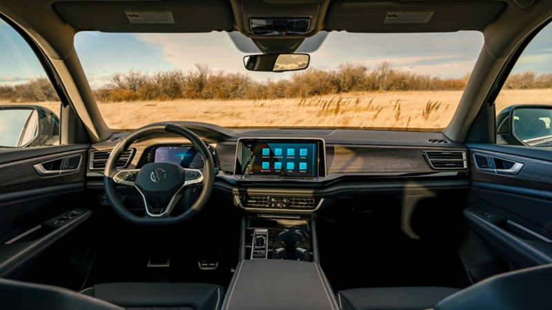 아틀라스의 실내는 폭스바겐 특유의 인체공학적 설계가 돋보입니다. 대시보드는 운전자 중심으로 배치되어 있으며, 물리 버튼과 디지털 인터페이스의 균형이 잘 잡혀 있습니다. 10.25인치 디지털 계기판과 중앙의 인포테인먼트 시스템은 직관적인 사용성을 제공하며, 3열까지 성인이 충분히 앉을 수 있는 레그룸을 확보했습니다.