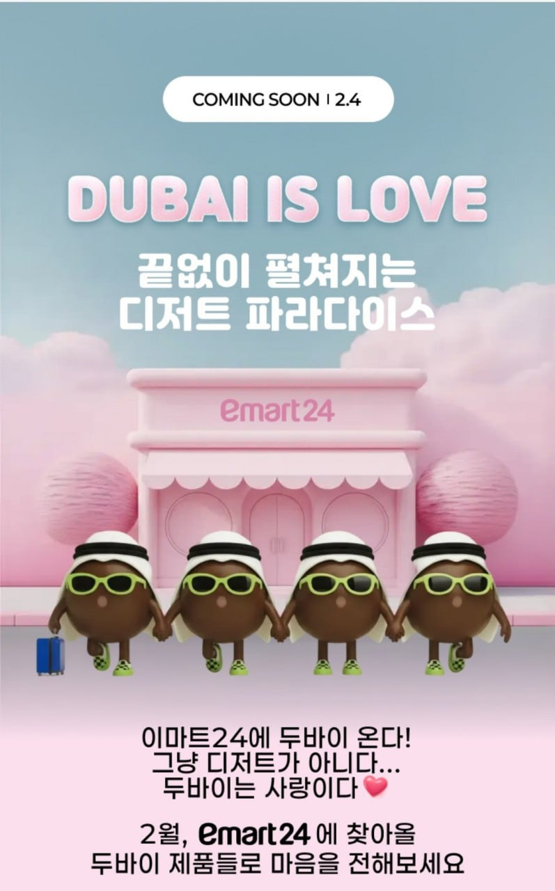 2025년 2월, 편의점 업계에 새로운 바람이 불고 있습니다. 이마트24가 SNS에서 폭발적인 인기를 끌고 있는 두바이 초콜릿 트렌드를 국내 편의점 최초로 선보입니다. 'DUBAI IS LOVE'라는 콘셉트 아래 총 10종의 프리미엄 디저트 라인업이 순차적으로 출시되며, 편의점 디저트의 새로운 장을 열게 됩니다.